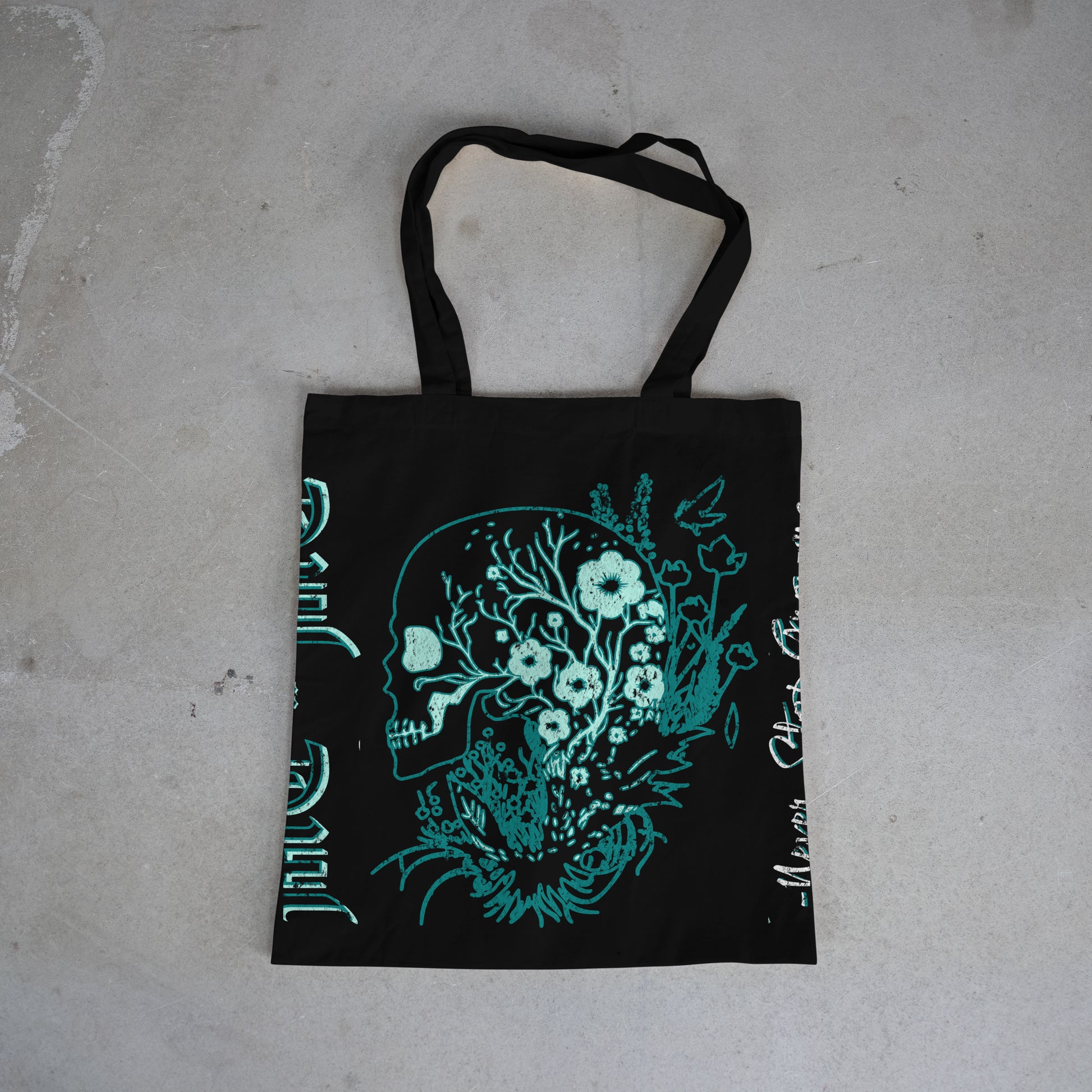 The Bloom Within tote blends art and attitude, featuring a striking skull-and-floral design that symbolizes growth, renewal, and inner strength.
