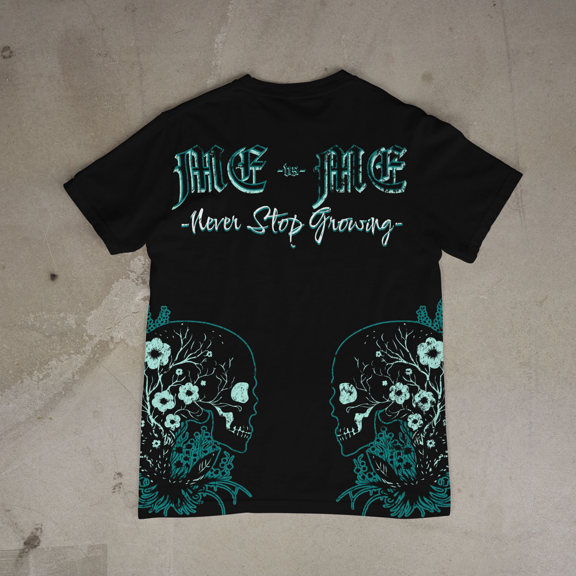 Stand out in style with the ME vs ME – Never Stop Growing Tee, designed to spark growth, resilience, and individuality. Featuring bold artwork of mirrored skulls blooming with flowers, this shirt is more than just fashion—it’s a statement of self-evolution.